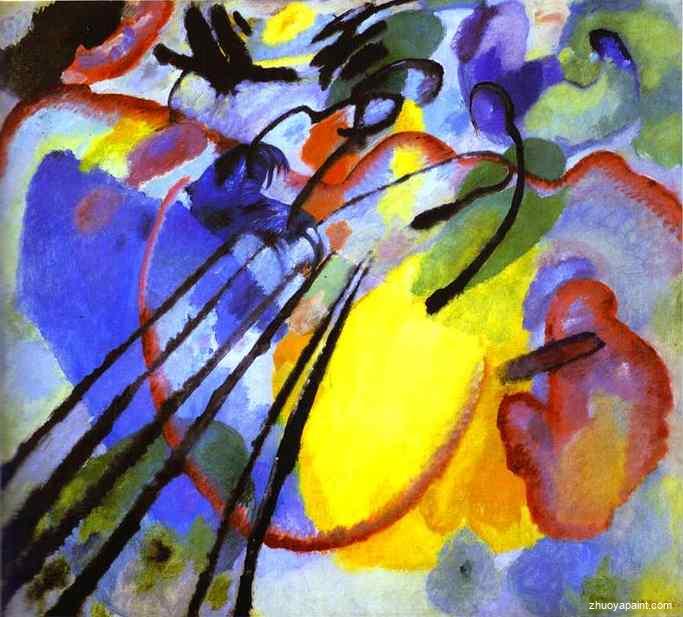 Improvisation 26 (Oars), a painting was originally hand painted by Wassily Kandinsky(1866-1944), he was a Russian painter and art theorist. He is credited with painting the first modern abstract works. This original masterpiece was created in 1912. And the original dimension was 97 x 107.5 cm.