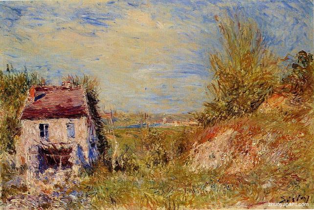 Abandoned House, originally hand painted by famous artist Alfred Sisley(1839-1899). This original masterpiece was painted on canvas circa 1886. The original dimension is height: 54 cm (21.26 in.) and width: 73 cm (28.74 in.). It currently belongs to private collection.