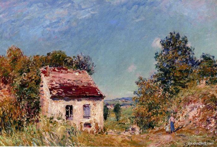 Abandoned House, originally hand painted by famous artist Alfred Sisley(1839-1899). This original masterpiece was painted on canvas circa 1886. The original dimension is height: 38 cm (14.96 in.) and width: 55 cm (21.65 in.).
