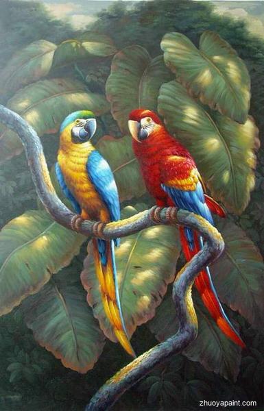 Parrot oil painting is hand painted on canvas by professional artists in our gallery. The reproduce it detail by detail, color by color to near perfection. This painting is suitable for hanging in living room, bedroom, hotel, dining room, showroom, hallway, children room, cinema, etc. Why not grace your house with this reproduced masterpiece? It is sure to make your rooms become more beautiful and bring many admirers.