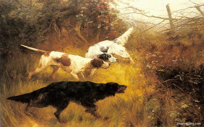 Three Pointers in a Landscape, a painting was originally hand painted by Three Pointers in a Landscape, a painting was originally hand painted by Thomas Blinks(1860-1912) who was a London painter. He´s best known for sporting and animal oil painting, especially for his hunting and racing scenes and dog oil paintings.