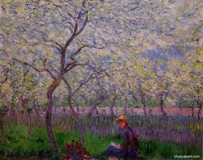 An Orchard in Spring, originally hand painted by famous artist Claude Monet. This original masterpiece was painted on canvas in 1886. It currently belongs to private collection.