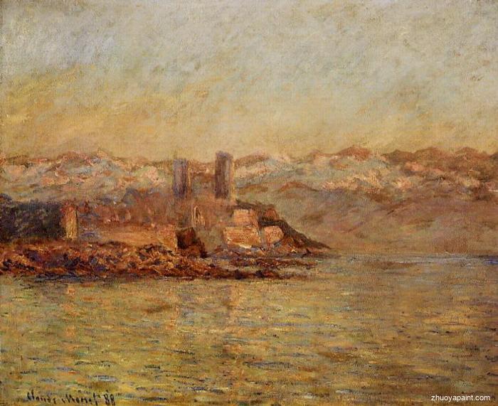 Antibes and the Maritime Alps, originally hand painted by famous artist Claude Monet. This original masterpiece was painted on canvas in 1888. The original dimensions are height: 60 cm (23.62 in.)and width: 73 cm (28.74 in.). It is held in a private collection.