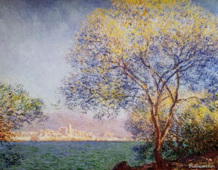Antibes in the Morning, originally hand painted by famous artist Claude Monet. This original masterpiece was painted on canvas in 1888. The original dimensions are height: 61 cm (24.02 in.) and width: 81 cm (31.89 in.). It is currently located at Philadelphia Museum of Art (United States).