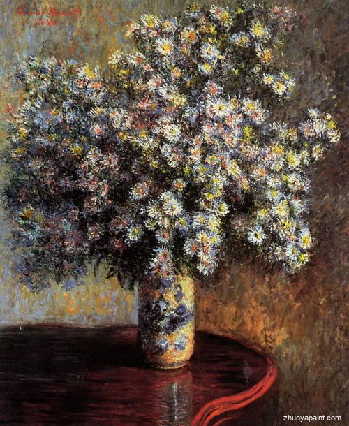 Asters, originally hand painted by famous artist Claude Monet. This original masterpiece was painted on canvas in 1880. It is held in a private collection. Claude Monet (1840 -1926), was a founder of French impressionist painting, and the most consistent and prolific practitioner of the movement´s philosophy of expressing one´s perceptions before nature, especially as applied to plein-air landscape painting. His style and passion for painting paved the way for the Modern art movement. While Monet successfully captured life´s reality in many of his works, his aim was to analyze the ever-changing nature of color and light. Known as the classic Impressionist, Monet cannot help but inspire deep admiration for his talent in those who view his work. Monet´s work never wavered from the impressionist style. He was considered a huge radical and definite leader in the Impressionist movement with his art heavily influencing other exalted painters such as Degas and Renoir.