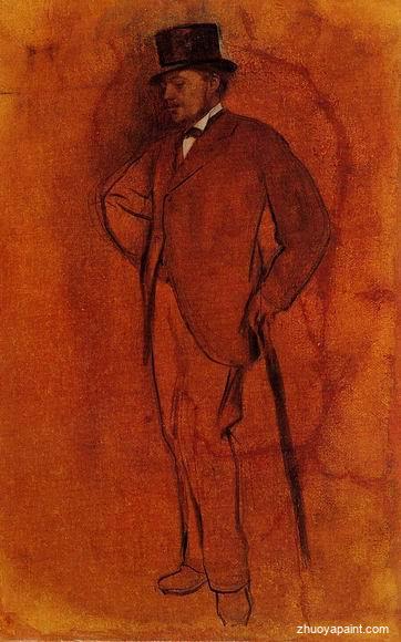 Edgar Degas(1834-1917)was a French artist famous for his work in painting, sculpture, printmaking and drawing. A superb draughtsman, he is especially identified with the subject of the dance, and over half his works depict dancers. These display his mastery in the depiction of movement, as do his racecourse subjects and female nudes. His portraits are notable for their psychological complexity and depiction of human isolation. Unlike other Impressionists of that time he preferred painting in an art studio which was unusual. He would sketch his subjects where he found them and return to his studio to capture them on canvas.