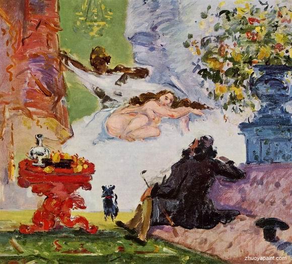 Paul Cezanne was a French artist and Post-Impressionist painter. He was carefully isolated during his lifetime and his paintings reflect that isolation. He is considered one of the foremost forerunners of modern art painting. Deeply influenced by the Impressionist painters of his time, Cezanne´s work is described as heavy, somber and violent yet visually romantic at times. As he matured, Cezanne mostly portrayed still lifes in his art and has greatly influenced Cubism, a form of painting. The line attributed to both Matisse and Picasso that Cézanne "is the father of us all" cannot be easily dismissed. This masterpiece will be reproduced by our professional artists carefully detail by detail, color by color to near perfection, museum quality reproduction is available. Why settle for a print or poster when you can catch many admirers with this museum quality oil painting reproduction? Or how about giving the art reproduction as a gift?