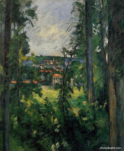 Auvers-sur-Oise, View from Nearby, originally hand painted by famous artist Paul Cezanne (1839-1906). This original masterpiece was painted on canvas from 1876 to 1877. It currently belongs to private collection.