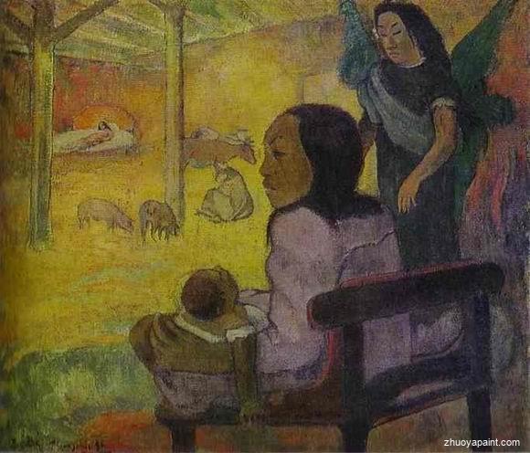 Baby (also known as The Nativity), originally hand painted by famous artist Paul Gauguin. This original masterpiece was painted on canvas in 1896. It is currently located at The State Hermitage Museum (Russia).