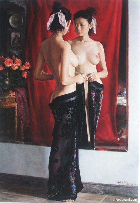 A Woman Fitting Before the Mirror, a painting was originally hand painted by Chinese artist ZeJu Guan(1941-). He painted portraits, female body and ballet dancers oil paintings. He is a Senior Artist of the Guangzhou Art Institute and a member of the Artists´ Association of China. He currently resides in the United States where he works as a studio artist, and also a member of the American Society of Portrait Artists and has been awarded the distinction of Honorary Overseas Artist by the Guangdong Art Institute.