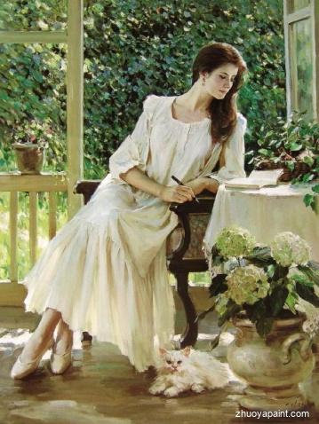 A Young Lady, a painting was originally hand painted by Yifei Chen(1946-2005), he was a well-known Chinese painter, fashion designer and film director, died at age 59 on Sunday morning in Shanghai. Chen painted realistic portraits and impressionistic scenery oil painting. His portraits included Western musicians, Chinese musicians playing traditional instruments such as the pipa, minstrels in medieval garb, Tibetan villagers and ballet dancers. The most important feature of Chen Yifei oil paintings is that the paintings filled with peace and quiet, there´s traditional Chinese beauty in the infiltration of realism. Both depicting the scenery south of Yangtze Rive and vivid woman portraits, all reflect the pursuit of the artist:"Use Western techniques, endow artworks with Chinese spirit".