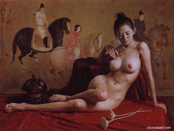 This is a beautiful chinese nude oil painting that is sure to bring beauty to any room and many admirers. Why not grace your house with this reproduced masterpiece? Or why not give this painting as a beautiful gift to your relatives or friends?