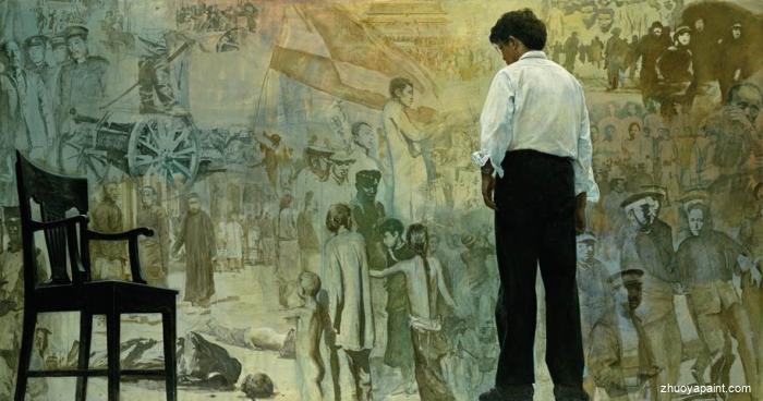 Thinking of History from My Space, a painting was originally hand painted by Yifei Chen(1946-2005), he was a well-known Chinese painter, fashion designer and film director, died at age 59 on Sunday morning in Shanghai. This original masterpiece was created in 1979. Chen painted realistic portraits and impressionistic scenery oil painting. His portraits included Western musicians, Chinese musicians playing traditional instruments such as the pipa, minstrels in medieval garb, Tibetan villagers and ballet dancers. The most important feature of Chen Yifei oil paintings is that the paintings filled with peace and quiet, there´s traditional Chinese beauty in the infiltration of realism. Both depicting the scenery south of Yangtze Rive and vivid woman portraits, all reflect the pursuit of the artist:"Use Western techniques, endow artworks with Chinese spirit".