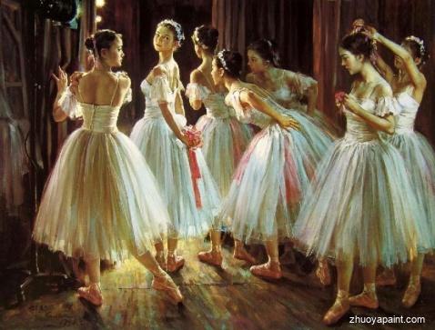 Before Performance, a painting was originally hand painted by Chinese artist ZeJu Guan(1941-). He painted portraits, female body and ballet dancers. He is a Senior Artist of the Guangzhou Art Institute and a member of the Artists´ Association of China. He currently resides in the United States where he works as a studio artist, and also a member of the American Society of Portrait Artists and has been awarded the distinction of Honorary Overseas Artist by the Guangdong Art Institute.