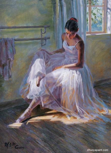 This ballet painting was originally hand painted by Chinese artist ZeJu Guan(1941-). He painted portraits, female body and ballet dancers. He is a Senior Artist of the Guangzhou Art Institute and a member of the Artists´ Association of China. He currently resides in the United States where he works as a studio artist, and also a member of the American Society of Portrait Artists and has been awarded the distinction of Honorary Overseas Artist by the Guangdong Art Institute.