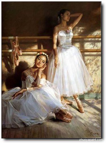 Two Dancers Resting, a painting was originally hand painted by Chinese artist ZeJu Guan(1941-). He painted portraits, female body and ballet dancers oil paintings. He is a Senior Artist of the Guangzhou Art Institute and a member of the Artists´ Association of China. He currently resides in the United States where he works as a studio artist, and also a member of the American Society of Portrait Artists and has been awarded the distinction of Honorary Overseas Artist by the Guangdong Art Institute.