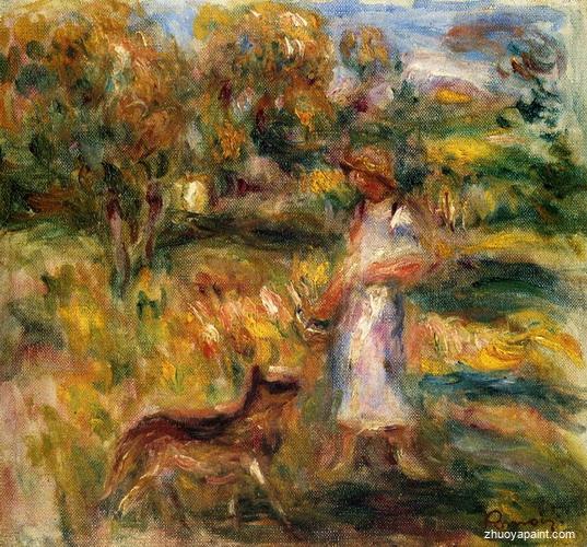 Woman in Blue and Zaza in a Landscape