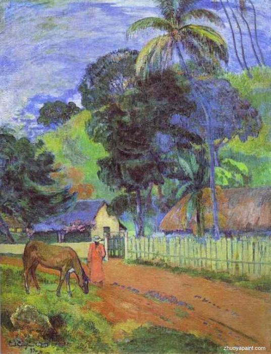 Horse on Road, Tahitian Landscape