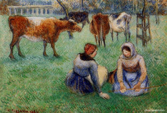 Seated Peasants Watching Cows