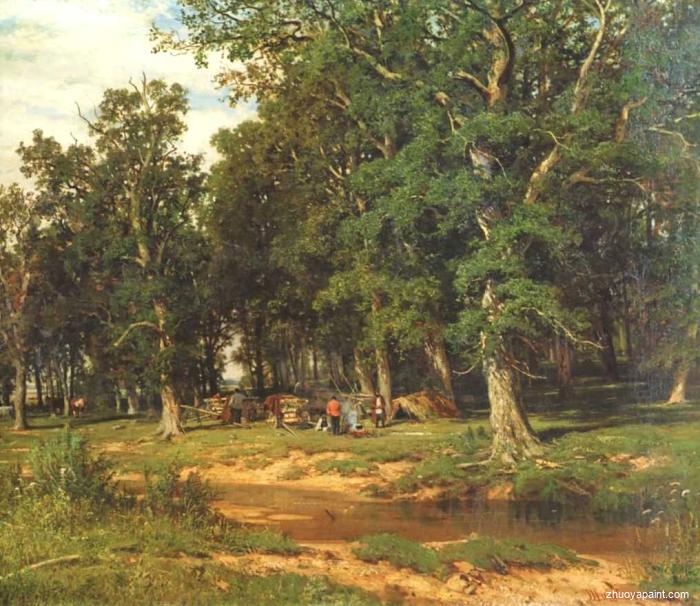 Haymaking in oak grove