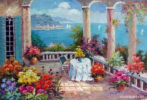 Flower Garden is a remarkable oil painting with exceptional use of color and detail brush strokes. This oil painting has a delightful setting with blue sea in the background. This painting is sure to bring simplistic beauty to any room of your home. Why settle for a print or poster when you can catch many admirers with this museum quality oil painting in your own living room or at your office? How about giving the art reproduction as a gift? Your friends will feel very surprised and happy.