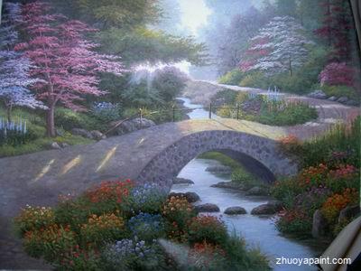 This remarkable garden oil painting was originally hand painted by Thomas Kinkade. The exceptional use of color, detail and brush strokes accentuate the beauty of this masterpiece. The delightful and cozy ambiance of this painting will take you away from the busyness and bustle of the daily grind. It is sure to bring you a feeling of relaxation and comfort. You do feel you are really in the fairyland, just enjoy yourself as much as you like!