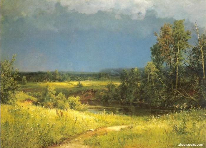 Before a thunderstorm, was originally created by famous artist Ivan Ivanovich Shishkin in 1884. Shishkin (1832-1898) was a Russian landscape painter. His painting method was based on analytical studies of nature. He became famous for his scenery oil painting. His oil paintings are notable for poetic depiction of seasons in the woods, wild nature, animals and birds. This masterpiece is currently located in Russia State Russian Museum. This painting is suitable for hanging in living room, bedroom, hotel, great hall, building office. Why not decorate your house with this beautiful reproduced masterpiece? It is sure to make your rooms become more beautiful and bring many admirers! Our professional artists in our art gallery will reproduce this masterpiece carefully detail by detail, color by color to near perfection. You will get high quality hand-painted oil painting reproduction.