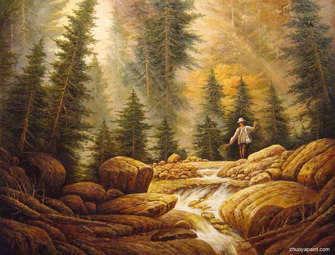 Fly Fisherman In The Rocky Mountains, originally hand-painted by artist Larry Jacobson. This masterpiece has been recreated carefully by our experienced artists. Our artists not only reproduce every detail of this original oil painting, but also to capture its soul. Why not grace your house with this beautiful painting, it is sure to add pleasantness and grandeur to your room and elevate your mood, making you feel relaxed and peaceful.