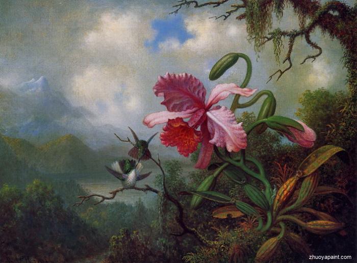 • TITLE: Orchid and Hummingbirds near a Mountain Lake