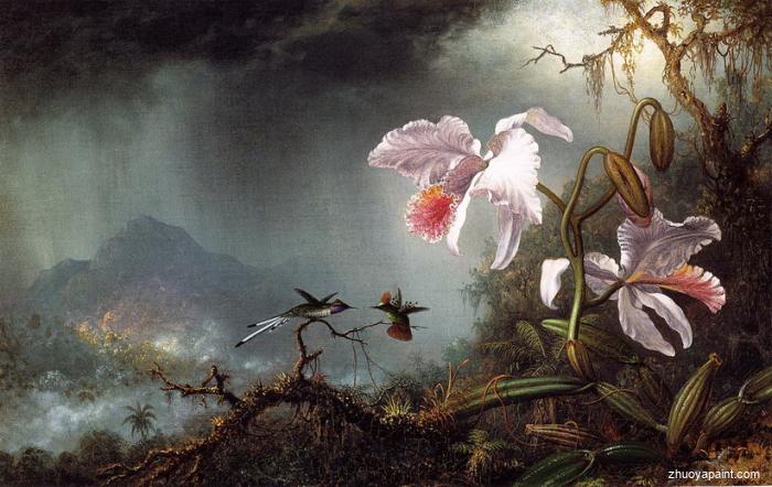 • TITLE: Two Fighting Hummingbirds with Two Orchids