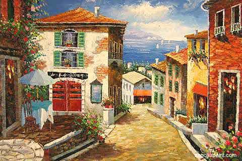 These storefront oil paintings with brilliant color, strong brush strokes, and exuberant style. Usually, artists use palette knife to paint this kind painting. A palette knife is a blunt tool used for mixing or applying paint, with a flexible steel blade. Artists traditionally used them for mixing paints together to create new colors. This led to the discovery of the texture that palette knives create while applying oil to canvas. This painting is suitable for living room, bedroom, hotel, great hall, building office, showroom, library,etc. Why not grace your house with this reproduced masterpiece? It is sure to make your home/rooms become more beautiful and bring many admirers. Or why not give this painting as a beautiful gift to your relatives or friends ? They will feel very surprised and happy!