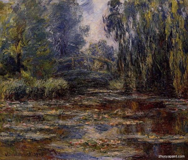 Water Lily Pond and Bridge, originally painted by Claude Monet(1840 -1926), was a founder of French impressionist painting, and the most consistent and prolific practitioner of the movement´s philosophy of expressing one´s perceptions before nature, especially as applied to plein-air landscape painting. The term Impressionism is derived from the title of his painting Impression, Sunrise. While Monet successfully captured life´s reality in many of his works, his aim was to analyze the ever-changing nature of color and light. Known as the classic Impressionist, Monet cannot help but inspire deep admiration for his talent in those who view his work.