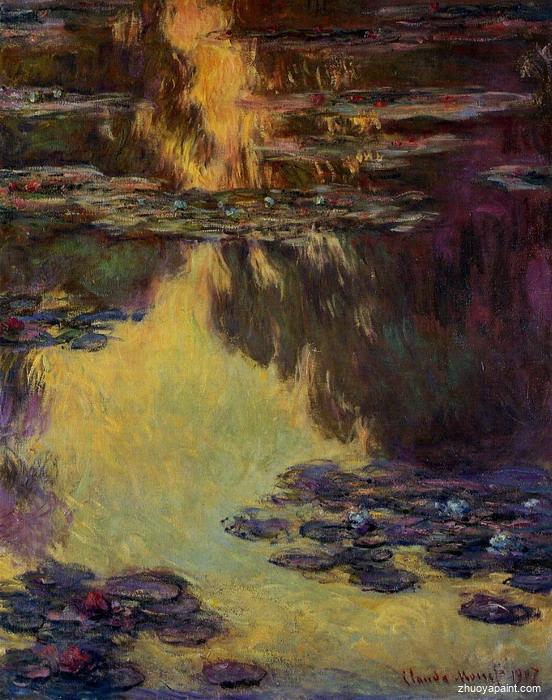 Water Lilies (or Nympheas) is a series of approximately 250 oil paintings by French Impressionist Claude Monet (1840–1926). The paintings depict Monet´s flower garden at Giverny and were the main focus of Monet´s artistic production during the last thirty years of his life. Many of the works were painted while Monet suffered from cataracts.