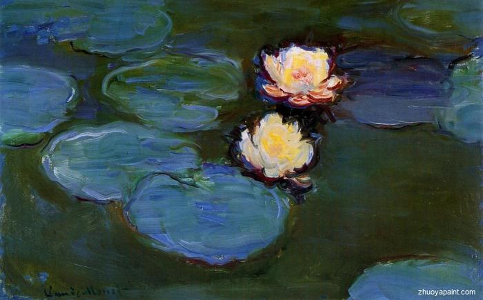 Water Lilies (or Nympheas) is a series of approximately 250 oil paintings by French Impressionist Claude Monet (1840–1926). The paintings depict Monet′s flower garden at Giverny and were the main focus of Monet′s artistic production during the last thirty years of his life. Many of the works were painted while Monet suffered from cataracts.