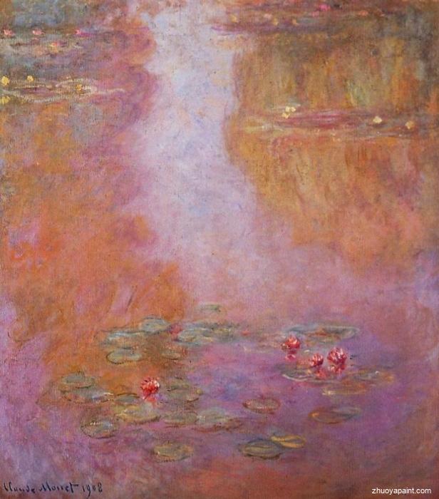 Water Lilies (or Nympheas) is a series of approximately 250 oil paintings by French Impressionist Claude Monet (1840–1926). The paintings depict Monet′s flower garden at Giverny and were the main focus of Monet′s artistic production during the last thirty years of his life. Many of the works were painted while Monet suffered from cataracts.