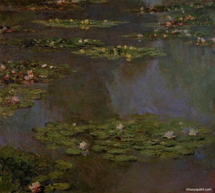 Water Lilies (or Nympheas) is a series of approximately 250 oil paintings by French Impressionist Claude Monet (1840–1926). The paintings depict Monet´s flower garden at Giverny and were the main focus of Monet´s artistic production during the last thirty years of his life. Many of the works were painted while Monet suffered from cataracts.