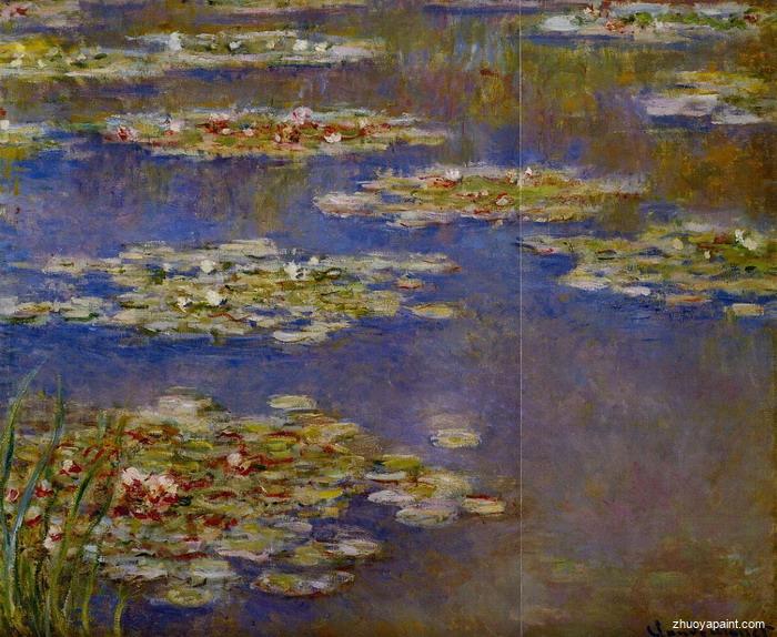 Water Lilies (or Nympheas) is a series of approximately 250 oil paintings by French Impressionist Claude Monet (1840–1926). The paintings depict Monet´s flower garden at Giverny and were the main focus of Monet´s artistic production during the last thirty years of his life. Many of the works were painted while Monet suffered from cataracts.