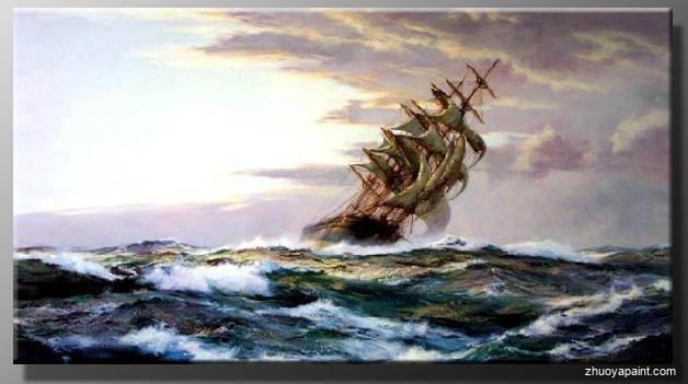 This seascape painting is a remarkable oil painting reminiscent of a beautiful panoramic view of a sea with boats. The surface has beautiful color balance with cool blue water and warm reflected walls, a truly wonderful piece. Add this handcrafted work of art to your collection. Why settle for a print or poster when you can catch many admirers with this museum quality oil painting in your own living room or at your office? How about giving the art reproduction as a gift?