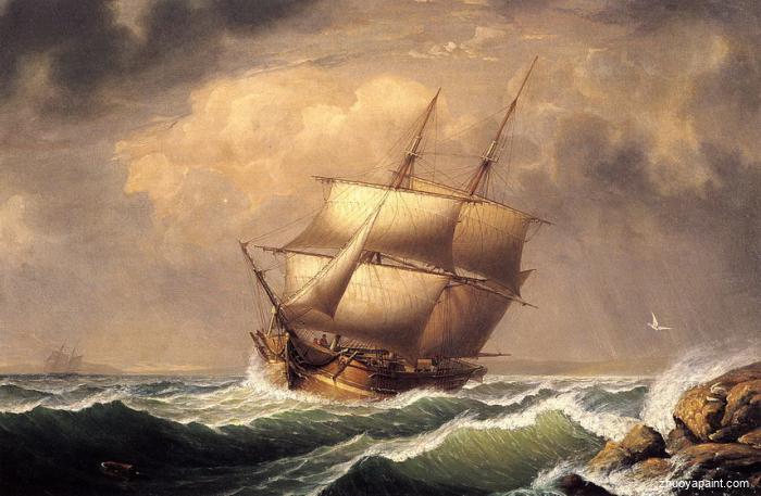 Merchant Brig under Reefed Topsails