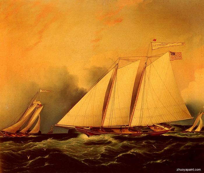 Under Full Sail, originally hand painted by James E. Buttersworth (1817-1894), he was an English painter who specialized in maritime art, and is considered among the foremost American ship portraitists of the nineteenth century. His paintings are particularly known for their meticulous detail, dramatic settings, and grace in movement.