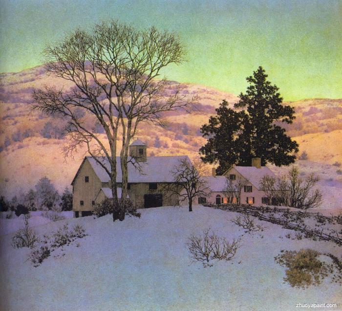 Afterglow was originally hand painted by Maxfield Parrish (1870 -1966), he was an American painter and illustrator active in the first half of the twentieth century. He is known for his distinctive saturated hues and idealized neo-classical imagery.