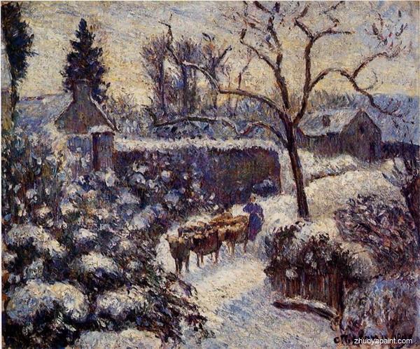 The Effect of Snow at Montfoucault was originally hand painted by Camille Pissarro (1830–1903) who was a French Impressionist painter. His importance resides not only in his visual contributions to Impressionism and Post-Impressionism, but also in his patriarchal standing among his colleagues, particularly Paul Cézanne and Paul Gauguin. This masterpiece is reproduced by our professional and experienced artists carefully detail by detail, color by color to near perfection. This painting is a good decoration for living room, bedroom, hotel, great hall, building office, showroom, exhibition hall, children room, cinema, bar, club, saloon bar, library, etc. Why settle for a print or poster when you can catch many admirers with this museum quality oil painting in your own living room or at your office? How about giving the art reproduction as a gift?