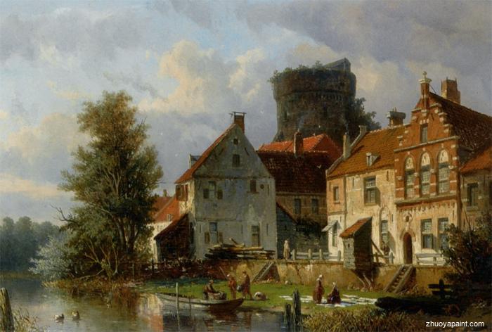 Many Figures in a Waterfront Town