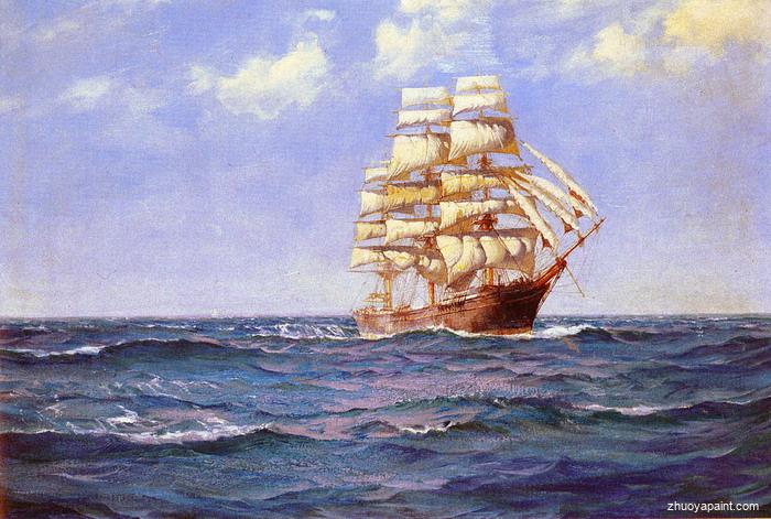 Rollicking Days originally painted by Montague Dawson RMSA, FRSA (1895-1973), he was a British painter who was renowned as a maritime artist. His most famous paintings depict sailing ships, usually clippers or warships of the 18th and 19th centuries.