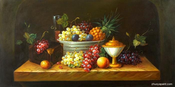 Beautiful grape and peach, brings you a feeling of fresh and make you enjoy the joy of harvest. This painting is suitable for dining room, restaurant, kitchen and other related places. The implied meaning is to encourage people to cherish food, love working and live independently. This fruit still life painting is hand painted with dark colors and strong brush strokes, the artist suggests that people should work in a down-to-earth way, face life with a peaceful mind, and gain harvest through hard work. When we enjoy this painting, we will get a power of justice, goodwill and happiness.