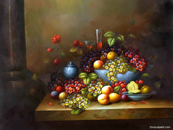Hand painted oil reproduction of beautiful fruit painting. Today it has been carefully recreated detail by detail, color by color to near perfection. Why not grace your your kitchen or dining room with this fresh fruit painting?| It is sure to bring many admirers.