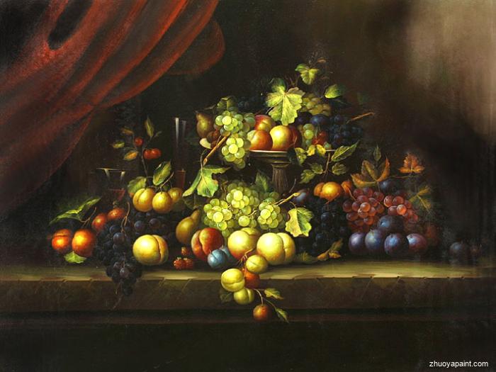Beautiful grape and peach, brings you a feeling of fresh and make you enjoy the joy of harvest. This painting is suitable for dining room, restaurant, kitchen and other related places. The implied meaning is to encourage people to cherish food, love working and live independently. This fruit still life painting is hand painted with dark colors and strong brush strokes, the artist suggests that people should work in a down-to-earth way, face life with a peaceful mind, and gain harvest through hard work. When we enjoy this painting, we will get a power of justice, goodwill and happiness.