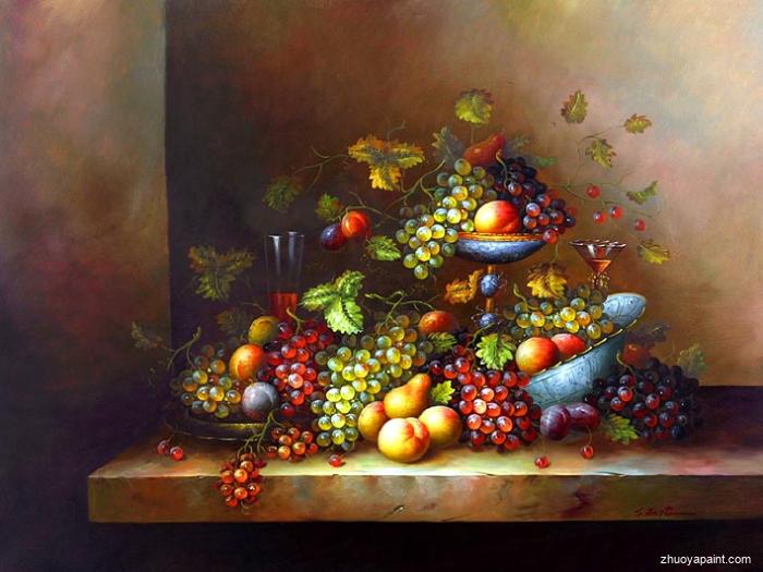 A still life oil painting(plural still lifes)is a work of art depicting mostly inanimate subject matter, typically commonplace objects which may be either natural(food, flowers, plants, rocks, or shells) or man-made(drinking glasses, books, vases, jewelry, coins, pipes, and so on)in a artifical setting. With origins in ancient times and most popular in Western art since the 17th century, still life paintings give the artist more leeway in the arrangement of design elements within a composition than do paintings of other types of subjects such as landscape or portraiture.