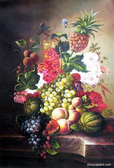 What a beautiful fruit still life oil painting! There are big pineapples, transparent grapes, and ripe peaches, when you see this, you do have a good appetite and enjoy your food. Why not grace your house with this reproduced masterpiece? It is sure to make your rooms become more beautiful and make you have good appetite. This painting is suitable for hanging in hotel, canteen, shopping market, kitchen, dining room, etc.