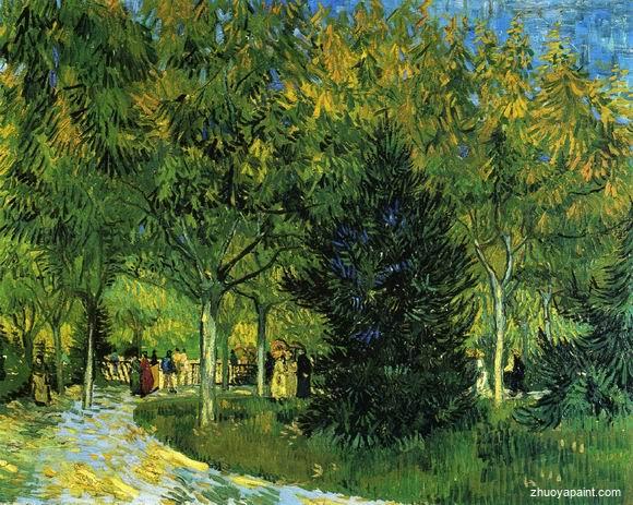 Avenue in the Park, was originally hand painted by famous artist Vincent Van Gogh. This original masterpiece was painted on canvas in 1888. The original dimension is height: 73 cm (28.74 in.) and width: 92 cm (36.22 in.). It is currently located at Kroller-Muller Museum (Netherlands).
